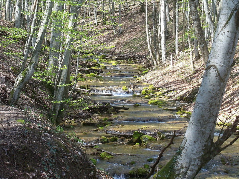 Тисовый водопад получил свое название от огромного экземпляра тиса ягодного, который растет рядом на берегу. Водопад с шумом пробивается через скалы, образуя ниже по течению "ванну...