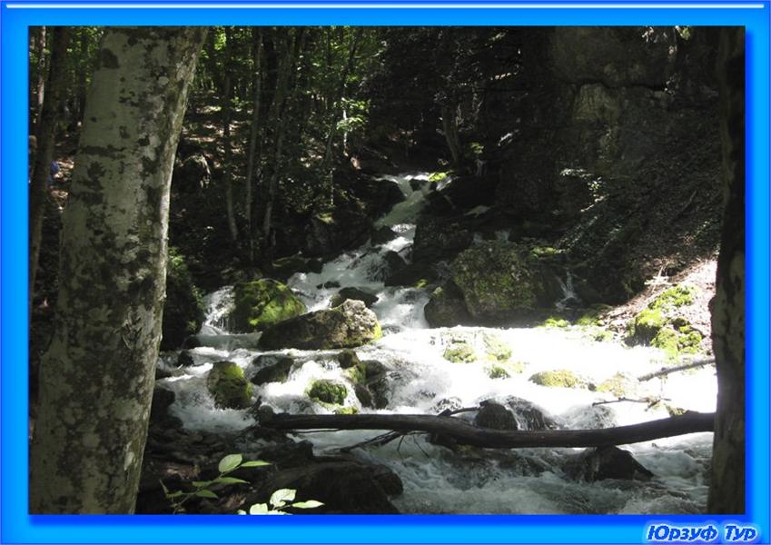 Тисовый водопад получил свое название от огромного экземпляра тиса ягодного, который растет рядом на берегу. Водопад с шумом пробивается через скалы, образуя ниже по течению "ванну молодости". Корни и стволы деревьев на берегу украшает вьющийся плющ, а сам водопад чем-то напоминает один из самых живописных водопадов в каньоне Кокасан р.Кучук-Карасу в Белогорском районе. Для меня Тисовый водопад стал небольшим, но очень приятным открытием природных богатств крымского пейзажа.