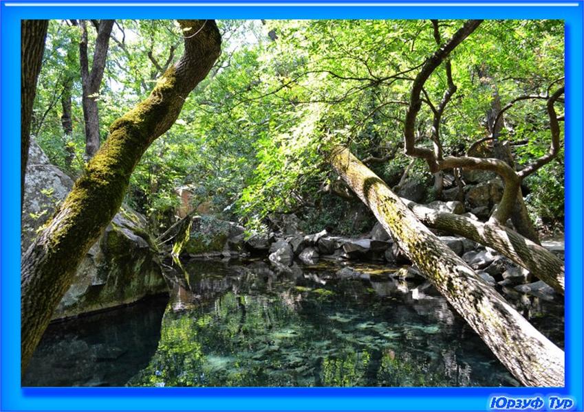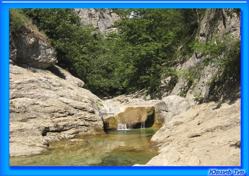 Гора Ай-Петри – самая популярная гора на Южном берегу Крыма. Ай-Петри в переводе с греческого – Святой Петр – гора ставшая одним из общепринятых и всеми любимых символов Крыма. Из Мисхора по канатной дороге поднимемся на плато Ай-Петри. Двадцать минут и вы на высоте 1200 м! На плато много интересного и необычного – здешние пейзажи иногда узнаешь в научно-фантастических фильмах. С видовых площадок открывается чудесная панорама Южного берега. На юго-западе вздыбились знаменитые Ай-Петринские зубцы, напоминающие зубы огромного дракона. Далее по серпантинной дороге мы направимся в Большой каньон Крыма - одно из природных чудес полуострова, удивительное творение великой матери-природы. Удивительно живописная горная тропа приведет вас в одно из самых глубоких ущелий горного Крыма – Большой каньон. Протяженность ущелья – 3 км, а глубина его склонов до 350 метров. По дну каньона струятся прозрачные воды речки Аузун-Узень - главного скульптора Большого каньона. Вода зимой и летом имеет почти одинаковую температуру - около 11°. В сердце каньона лежат знаменитые «озера» Голубое (Любви) и Кара-Голь (ванна Молодости), утоляет жажду туристов источник Пания, один из 19-ти самых больших источников Горного Крыма. Самое крупное из "озер", названное "Ванной молодости", достигает глубины четырех метров. Легенда гласит, что искупавшись в ней, человек восстанавливает свои силы и становится моложе.