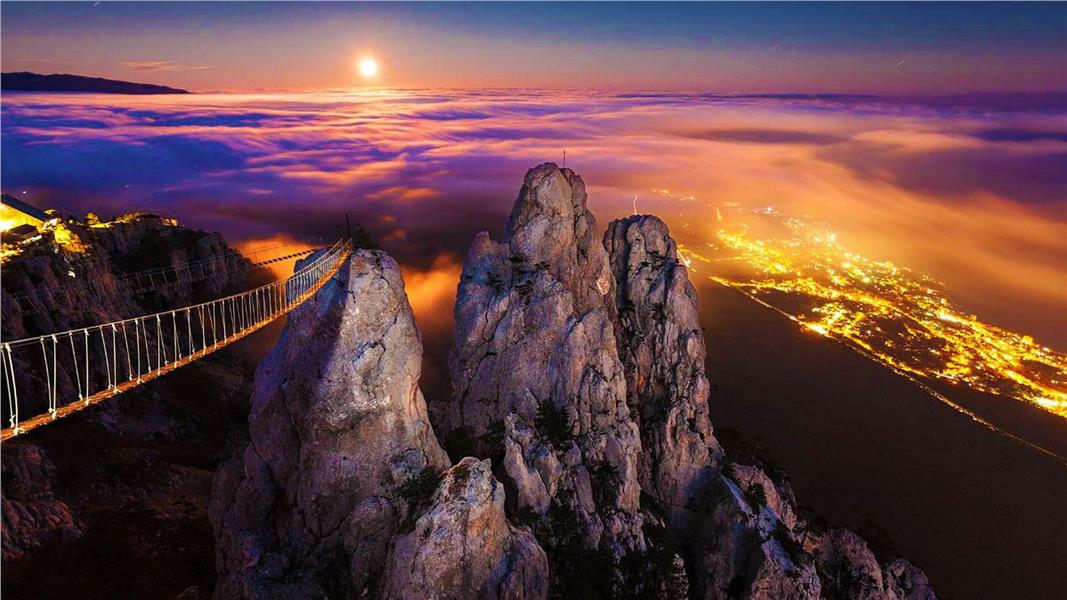 Это подвесной мост на горе Ай-Петри. Состоит этот мост из двух частей ведущих с вершины горы к зубцам. Хоть это и экстремальный аттракцион, он абсолютно безопасен, от срыва посетителей защищают не только перила моста но и беспрерывная страховка. По своей сути это мини Canopy Tours (сеть подвесных мостов или троллей).