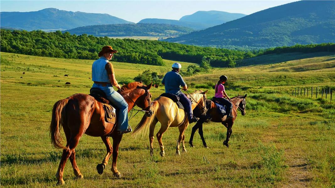 Предлагаем Вам совершить незабываемую часовую прогулку на лошадях по окрестностям Коктебеля. Круговая панорама Эчки-Дага и Кара-Дага, горный кряж "Спящая красавица" - эти красоты Вы никогда не увидите из окна автобуса.После того как вас доставят на конную базу, это недалеко от Коктебеля, вас встретят опытные инструктора. Они рассадят всех на лошадей, проведут инструктаж и выведут на маршрут.
