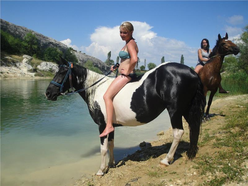 Маршрут проходит через горный массив Эчки-Даг. Прибываете на песчаный пляж Лисья бухта. Желающие могут покупаться с лошадьми в море. Обратный маршрут идет по другой тропе.По возвращении на базу вас ждет восточный стол и крымское вино.