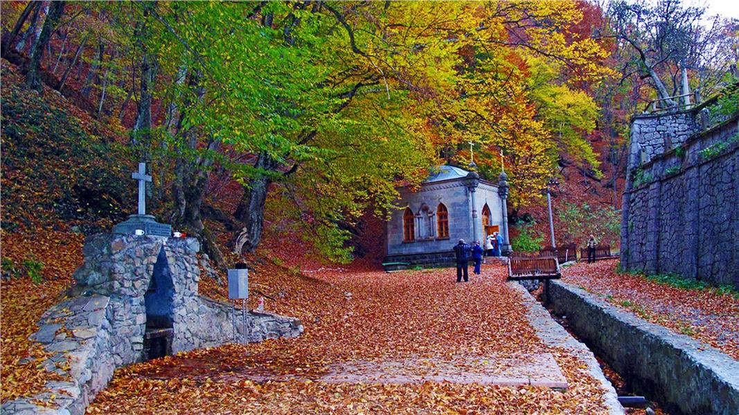 Косьмо-Дамиановский (Козьмодемьяновский) монастырь - находится в 16 км от Алушты, между Бабуганом и Синабдагом в Центральной котловине Крымского государственного заповедника. Монастырь был основан около целебного источника Савлух-су ("здоровая вода"), в месте, где, по преданию, были убиты святые бессребренники Косьма и Дамиан. Возникновение православного монастыря в честь св. Косьмы и Дамиана связано с именем архиепископа Херсонского и Таврического Иннокентия. В 1856 г. с благословения архиепископа Иннокентия под руководством игумена Макария началось обустройство киновии.