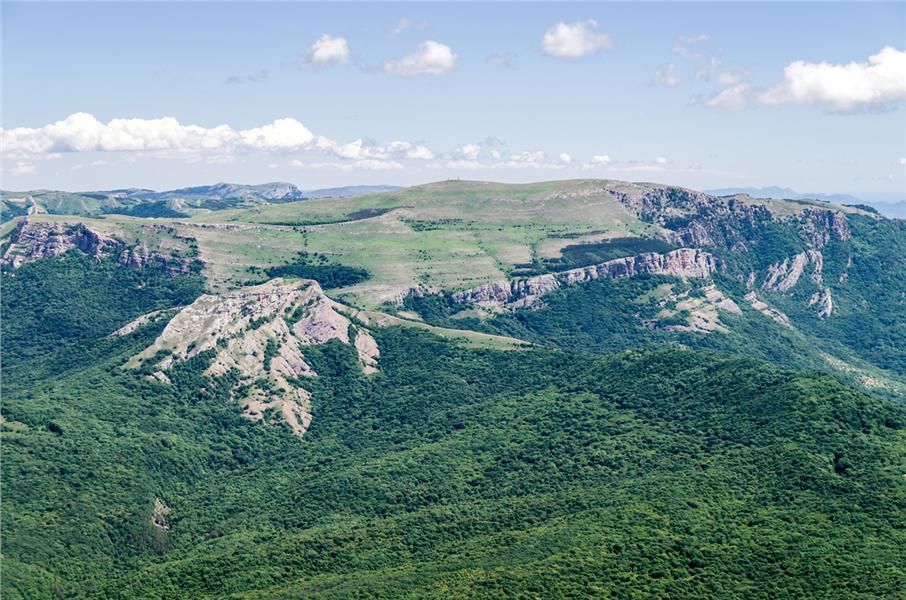 Чатыр-Даг — горный массив, расположенный в южной части Крымского полуострова, в 10 км от моря, пятый по высоте в Крыму, принадлежит к Главной гряде Крымских гор. Длина плоскогорья с севера на юг — 10 километров, ширина с запада на восток — около 4 километров. Как верхнее, так и нижнее плато Чатыр-Дага являются популярными туристическими объектами благодаря довольно лёгкой достижимости с Ангарского перевала. Нижнее плато изобилует пещерами, из которых оборудованы и являются популярными экскурсионными объектами следующие: Мраморная, Эмине-Баир-Хосар и Эмине-Баир-Коба. Кроме того, на нижнем плато располагаются известные «дикие» пещеры Суук-Коба и Бин-Баш-Коба.