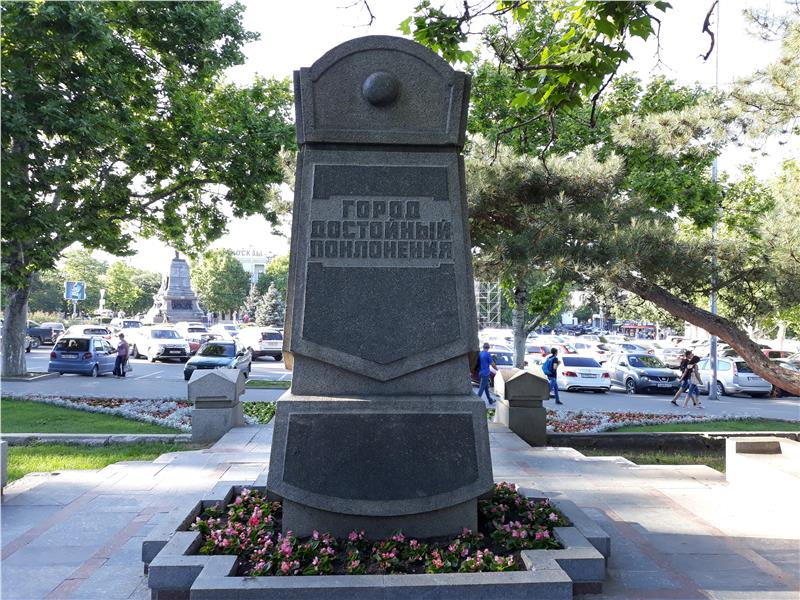 Обелиск Славы - уходящий в небо 28-метровый монумент, облицованный серым гранитом стал памятником всем освободителям Севастополя. С четырех сторон пьедестала на стелах, увековечены в красном граните номера воинских частей, соединений и имена героев павшихосвобождавших город. У подножия обелиска горит Вечный огонь и звучит музыка участника битвы за Севастополь Б. Мокроусова «Заветный камень».