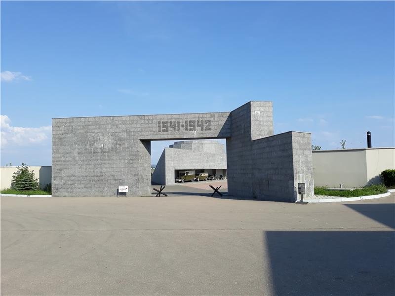 Мемориал воздвигнут на главной площади города - площади Нахимова. Этот монументальный памятник посвящен подвигу Севастополя в годы Великой Отечественной войны. На бетонной стене - рельефное изображение воина, отражающего натиск врага. Сурово и гневно его лицо, до предела напряжены мускулы рук, вся фигура дышит динамикой боя. Это символ Севастополя, вставшего на пути гитлеровских полчищ. Три вражеских штыка символизируют три наступления фашистов.
