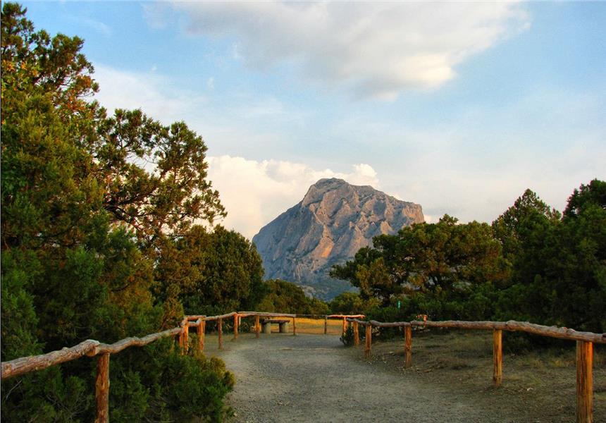 Экскурсия очень популярна. Практически все, кто отдыхает в Юго-восточном Крыму, посещают этот райский уголок. Небольшое расстояние от Феодосии до Судака (55 км) мы проезжаем по живописной горной, серпантинной дороге, которая проходит через три долины (Коктебельскую, Отузскую и Солнечную) и Синорский перевал. Маршрут комплексный, экскурсовод повествует об истории и природных достопримечательностях, о винах и коньяках Коктебеля и Солнечной долины, о русском виноделе князе Льве Голицыне и его знаменитом новосветском шампанском, о Судакской крепости и современном городе-курорте Судак. Каждый найдет в этой экскурсии что-то интересное. В Судаке вы посетите Судакскую крепость - один из наиболее впечатляющих памятников юга Крыма. Размерами, мощностью, живописным расположением и сохранностью она превосходит все средневековые укрепления, сохранившиеся в Северном Причерноморье. «Во всей Европе нет развалин живописней этих: никакие рейнские замки не сравняться с ними». На экскурсии по крепости, которая займет около 1,5 часов, вы познакомитесь с историческим прошлым Судака. Башни, возведенные при генуэзцах, более 6 веков взирают на мир своими узкими бойницами. В семи километрах от Судака расположен поселок- Новый Свет, древнее название которого - Парадиз (рай) говорит само за себя. Живописные бухты Зеленая, Синяя и Голубая, оригинальные по форме горные вершины и мысы, такие как Караул-Оба и Капчик, грот Голицына, реликтовая растительность можжевельника древовидного и сосны Станкевича, удачно проложенная экскурсионная тропа (тропа Голицына) снискали новосветскому побережью славу уникального природного ландшафта. Никакие морские прогулки не дают даже отдаленного впечатления о Новом Свете. Тропа Голицына примечательна тем, что ее маршрут обходит местные бухты и прогулка по ней — обязательный ритуал. Только прошагав своими ногами по Голицынской тропе, ощутив жар нагретых солнцем скал, вдохнув целебный воздух под сенью можжевельников, искупавшись в чистейших морских водах Синей и Зеленой бухты, вы постигнете великолепие природы Нового Света. На экскурсии вас неоднократно посетит мысль, что вы видели эти места. Не удивляйтесь: эти места называют землей-киноактрисой, огромное количество фильмов снималось в этих местах (например «Человек-амфибия», «Три плюс два», «Пираты XX века»). Особенность этого маршрута - его солнечность: весь день вы будете находиться на солнце, поэтому следует запастись головными уборами, зонтами от солнца, солнцезащитными кремами, водой в достаточном количестве. Впрочем, все это можно купить и по пути. Маршрут включает в себя купание в двух бухтах Нового Света. Первая - Зеленая - в самом поселке: оборудованный песчаный пляж, прекрасное ровное дно. В Синей бухте условия другие: "дикая" природа, отсутствие раздевалок, огромные, раскаленные солнцем булыжники, каменистый пляж в окружении живописных скал. Экзотика! Одной из изюминок экскурсии является возможность попробовать настоящее коллекционное шампанское "Новый Свет", изготовленное по классической трехлетней технологии. Шампанское можно приобрести в фирменном магазине завода «Новый свет».