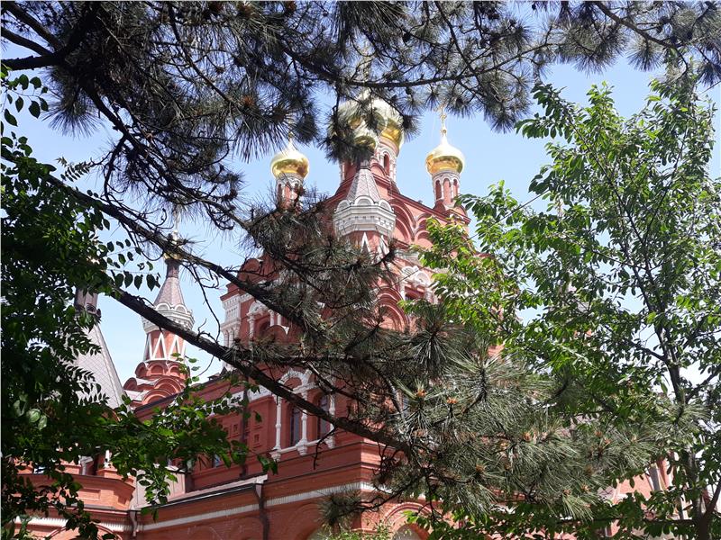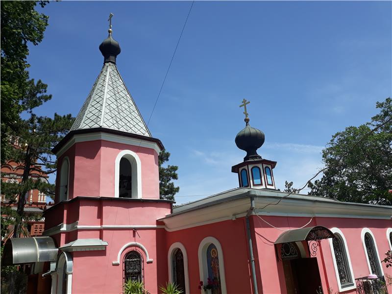 Троицкий собор построили в 1868 году. Самая первая, деревянная церковь появилась на этом месте еще раньше – в 1796 году. Греческая гимназия, образованная в 1826 году, существовала на базе этого храма. Со временем решили деревянную церковь разобрать и вместо нее выстроить более масштабный собор. И вот, в 1868 году, прихожане могли уже прийти в новый храм.Проектировал собор И.Колодин, известный архитектор. Здание выдержано в классическом стиле. Основа его – крестообразная, в середине возвышается световой барабан в виде восьмигранника. Колокольня построена над левым приделом. Изображения из мозаики и декоративные узоры украшают фасад здания. Также украшением храма стали коринфские капители, небольшие пилястры и арки. Голубой цвет имеют церковные купола и колокольня. Таков сегодняшний облик собора.