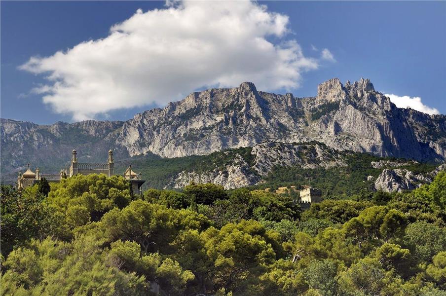 Первый объект показа Большой каньон Крыма, максимальная глубина составляет 320 м. Чудом природы называют это дикое ущелье, расположенное в глубине северного склона Ай-Петринского плато, поражающее суровой красотой и своеобразием ландшафта. По мере продвижения в глубь каньона, склоны гигантской расщелины, становятся все выше и отвесней, все ближе подступают друг к другу. Справа и слева круто вздымаются вверх скалы, над головой высятся грозные утесы. По дну Большого каньона течёт река Аузун-Узень (Ротовая), вдоль которой проходит туристическая тропа, которая спускается вниз к Голубому озеру и выходит к Яблоневому броду. В русло реки Аузун-Узень впадает река Алмачук и источник Пания - один из крупнейших карстовых источников Крыма. Интересны котлы и «ванны», «высверленные» водой в ложе ущелья, их количество достигает более 150 образований. Крупнейшие ванны достигают 5-6 м в поперечнике и 2-3 м глубины. Самая знаменитая - Кара-Голь (Черное озеро), или как его называют туристы - Ванна молодости. Температура воды здесь не превышает +9° - +11 °С даже в жаркий полдень. Свое современное название она получила не случайно. После купания в ней словно возвращается молодость: ощущается прилив сил, появляется бодрость и легкость, человек чувствует себя моложе. На протяжении пешего перехода предоставляется возможность искупаться в Ванне молодости и купели источника Пания, (Святое озеро). По окончания пешеходной части экскурсии туристы садятся в автобус и по горному серпантину дороги, поднимаются на плато Ай-Петри. С высоты более километра над уровнем моря открывается изумительная панорама Южного берега Крыма от Аю-Дага на востоке до Симеиза на западе: заповедные хвойные леса, карабкающиеся по отвесным скалам словно парящие в воздухе сосны, многочисленные здравницы с великолепными парками, безбрежные просторы Черного моря. Впечатление усиливает обрыв высотой несколько сотен метров, на бровке которого расположена видовая площадка. Горный массив Ай-Петри - одна из наиболее известных природных достопримечательностей Крыма. На юго-западе плато, словно вздыбились, знаменитые Ай-Петринские зубцы, напоминающие зубы огромного дракона, самые крупные из них достигают высоты 7-19м. Ученые считают, что это древний коралловый риф, многие миллионы лет назад поднявшийся со дна моря. На плато Ай-Петри туристы пробудут 1,5 часа. За это время они смогут пообедать, посетить восточный базар, покататься на лошади или верблюде, сфотографироваться с дикими животными, или просто полюбоваться восхитительными видами плато. Затем экскурсантам предстоит спуститься с плато вниз по Канатной дороге «Мисхор - Ай-Петри». Это самая протяженная горная канатная дорога в Европе (около з км) и самая крутая (перепад высот около километра) подвесная канатная дорога в Крыму. Спуск подарит вам немало острых ощущений. На обратном пути экскурсанты смогут полюбоваться со смотровой площадки архитектурным символом Южнобережья - Ласточкиным гнездом.