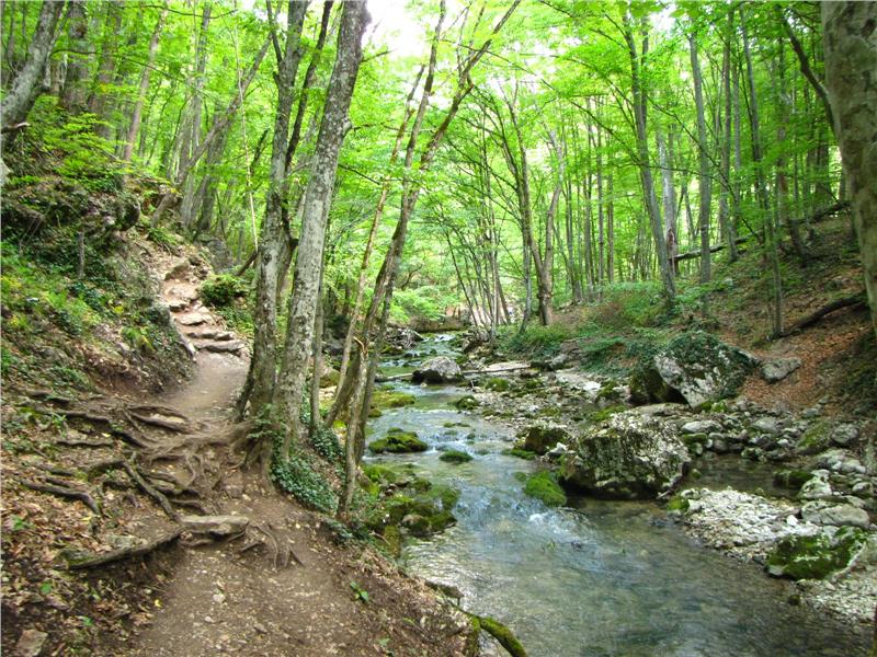 Источник Пания, крупнейший (370 л/с) карстовый источник Крыма. Впервые исследован и описан Н. В. Рухловым в 1915 г.
