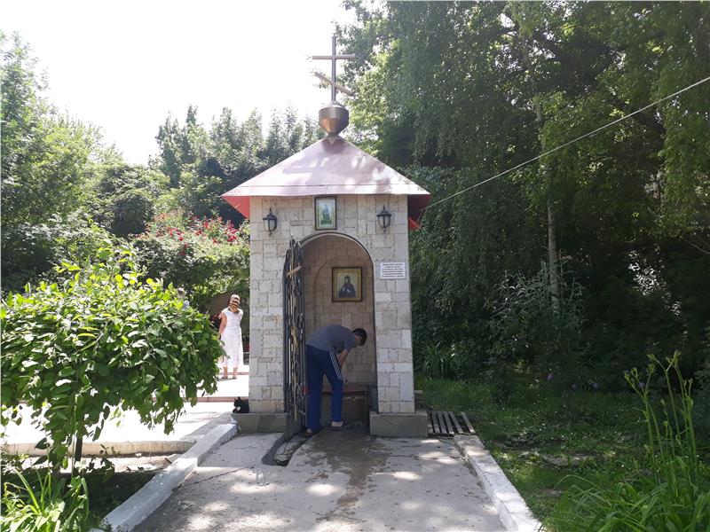 Источник Георгия Победоносца расположен в 1,5 км от территории монастыря. По преданию, на этом месте трижды было явление всадника на коне, в котором монахини узнали св. Георгия Победоносца. Пешком 20-30 мин некрутого подъема в гору по лесной тропе. Возле источника две купели - отдельно мужская и женская. Купели открытые, выложены кирпичем. Считается, что воды этого источника излечивают болезни опорно- двигательного аппарата, суставов, нервной системы.