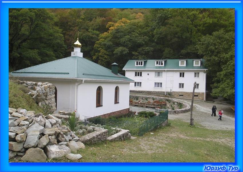 Косьмо-Дамиановский (Козьмодемьяновский) монастырь - находится в 16 км от Алушты, между Бабуганом и Синабдагом в Центральной котловине Крымского государственного заповедника. Монастырь был основан около целебного источника Савлух-су ("здоровая вода"), в месте, где, по преданию, были убиты святые бессребренники Косьма и Дамиан. Возникновение православного монастыря в честь св. Косьмы и Дамиана связано с именем архиепископа Херсонского и Таврического Иннокентия. В 1856 г. с благословения архиепископа Иннокентия под руководством игумена Макария началось обустройство киновии.